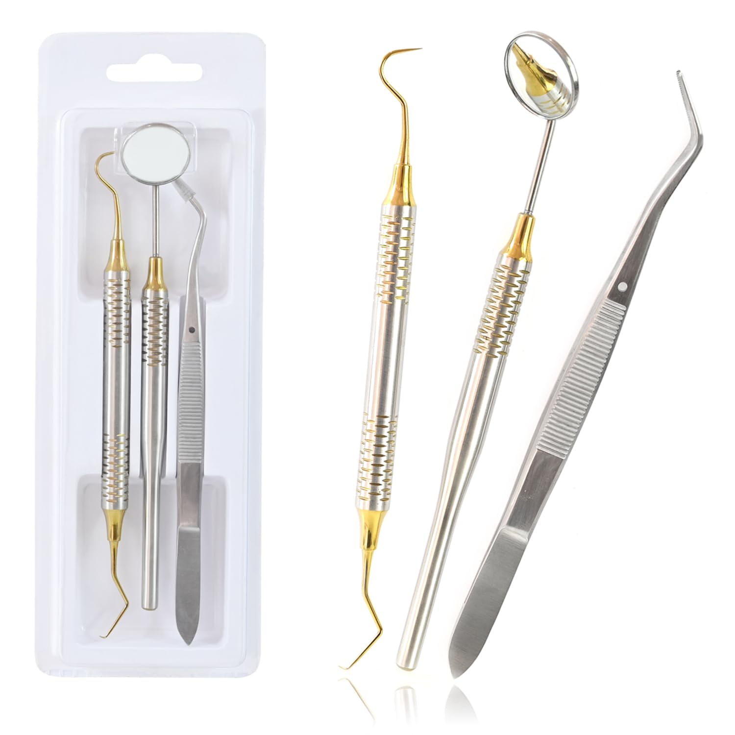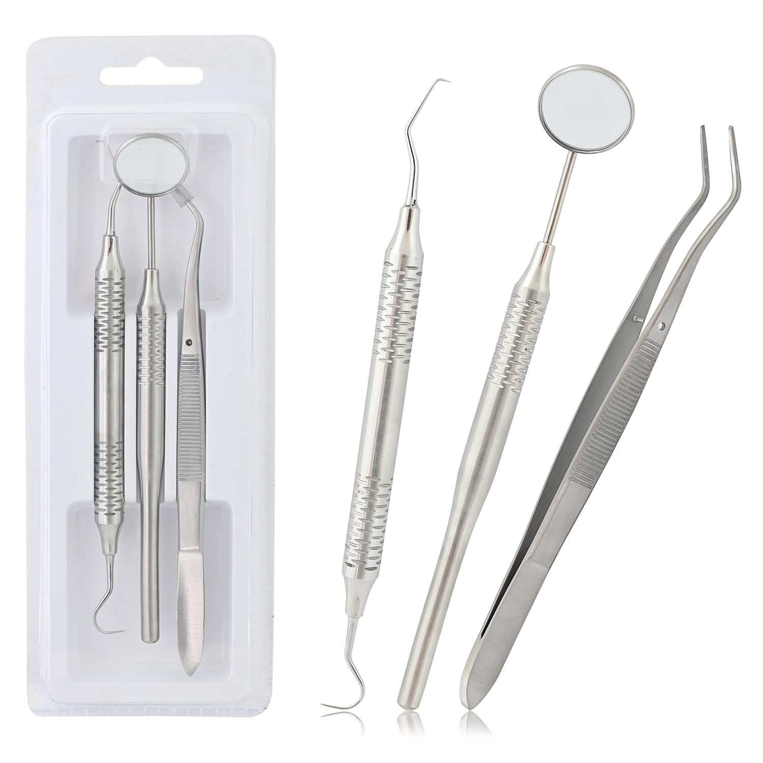 ✔ 3 Essential Dental Instruments – Includes a mirror for visibility, an explorer for detecting cavities, and a cotton plier for